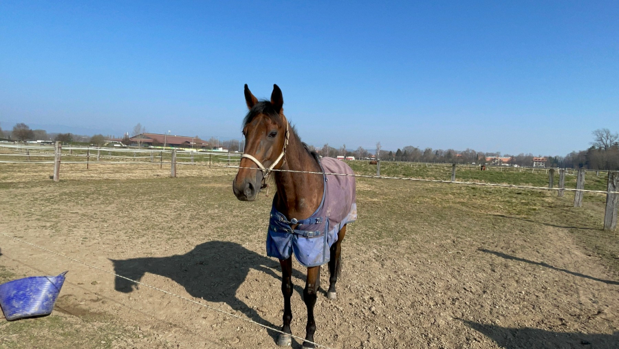 Fiddle auf seinem Paddock, für ihn geht es bald auch wieder an den Start.
