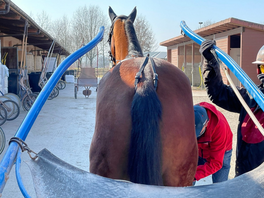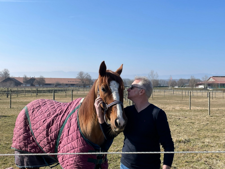 Dann hatte unser COUSIN noch Besuch bekommen. Seine Ex-Besitzer aus Frankreich waren in der Nähe in den Ferien. Sie nutzten die Gelegenheit zu einem Abstecher nach Avenches. Die Bahn gefiel ihnen gut und sie konnten sich vor Ort versichern, dass es COUSIN an nichts fehlt. Er geniesst es in der Nähe seiner Freundin DAISY. Die beiden laden nach dem anstrengenden White Turf-Meeting ihre Batterien wieder auf. Die Idee ist, dass die beiden an Pfingstmontag in Frauenfeld wieder ins Renngeschehen eingreifen.