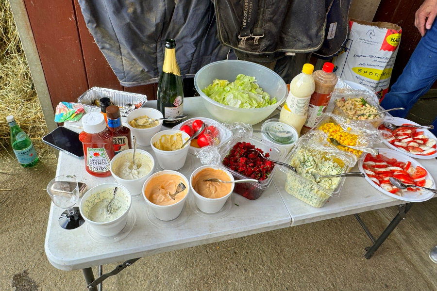 Ein fantastischer Tag, von A bis Z. Obschon die Rennen für einmal erst am Abend gelaufen wurden, trafen wir uns schon um die Mittagszeit in Avenches im Stall. Grund war der 50. Geburtstag von unserem Vorstandsmitglied Adrian. Er lud zur Stall-Grillparty und liess sich nicht lumpen... Ein Gaumenschmaus erster Güte! Die Bilder sprechen für sich!