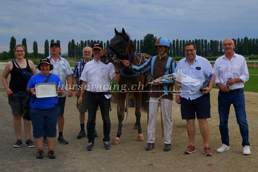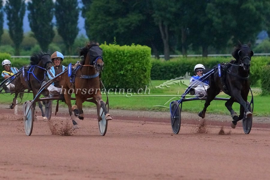 Dann galt es in der Coupe des 3 Ans für FANTASTIC und LA FORMIDABLE ernst. Die Ausgangslage war unterschiedlich. Für FANTA, geht es noch immer darum zu lernen. Sie braucht noch mehr Zeit und auch mehr Rennhärte, ist weiter am Wachsen. Loris startete gut mit ihr, hatte bis im Schlussbogen an zweiter Stelle nur die Favoritin vor sich. Als es dann schneller wurde, konnte FANTA nicht ganz mitgehen. Wobei Loris (der auf Anordnung ohne Peitsche fahren musste) sie dann auch nicht mehr forderte im Einlauf. Sie kam nicht weit geschlagen als Fünfte ins Ziel. A propos Ziel: Ihr Ziel ist ein für sie ideal ausgeschriebenes Rennen am 20. August (bis 6000 Gewinn). Gut möglich, dass sie bis dahin nicht mehr läuft. Allenfalls am 7. August nochmal in Avenches.