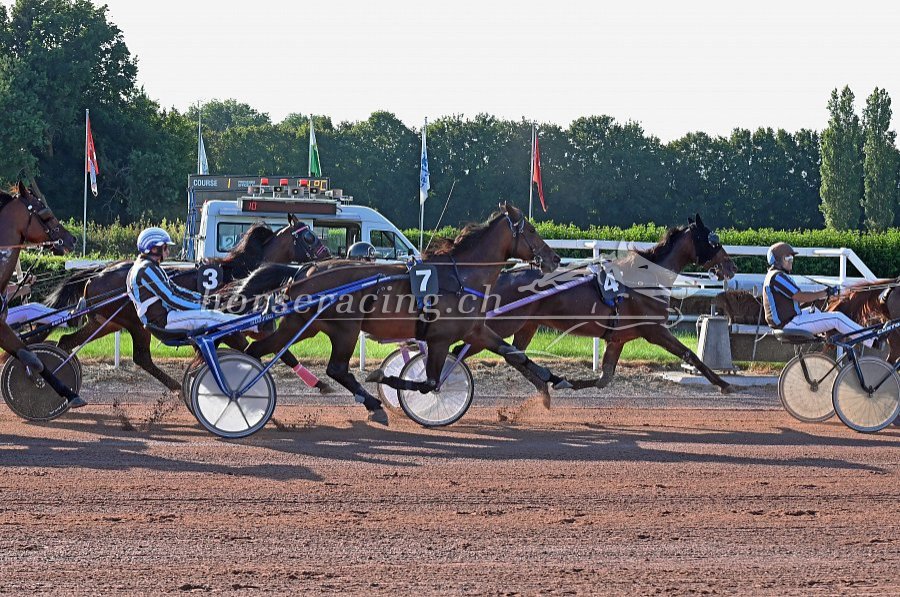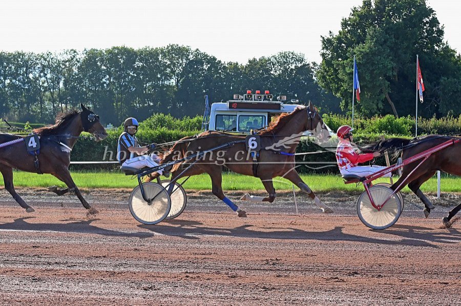 Der Prix d'Été wurde von Beginn der letzten Gegenseite an mit Tempo gelaufen. Der Ausreisser Adios machte das hervorragend und liess sich nicht mehr abfangen. Für einen Moment sah es zu Beginn der Zielgerade so aus, als könne der gross aufmarschierende ULYSSE (mit Loris) ihm gefährlich werden. Doch er hatte seinen Angriff im Bogen etwas früh lanciert (nicht zuletzt auch für VESSILLO), zog dann nicht ganz bis am Schluss durch. VESSILLO (mit Marcel) seinerseits hatte gestern nicht ganz den Punch wie zwei Wochen zuvor. Loris hatte an der Ausrüstung das eine oder andere verändert, unser Italo-Hengst soll immer wieder etwas Abwechslung haben. So war er eher minimalistisch, wie Marcel sagte. Sonst hätte VESSILLO eigentlich Rang zwei holen müssen. Er ging am Ende aber nicht an ULYSSE und einem anderen Gegner vorbei. Wie auch immer, Rang drei und vier im Hauptereignis sind alles andere als schlecht. Zumal in einer tiefen 15er-Zeit mit einem letzten Kilometer um 1:12.