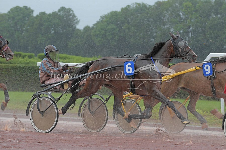 Chérie (mit Martin) und Elk (Loris) kamen mit den Gegebenheiten bestens klar. Chérie hatte im Einlauf noch viel "Gas", als vor ihr eine Gegnerin abrupt langsamer wurde. Es kam zu einem Stopp und Chérie fiel in Galopp... Schade, wie wäre weit vorne gelandet, war Martin überzeugt. Chérie könnte am 1. September in Avenches wieder laufen, sie hat jedoch viele Optionen.
