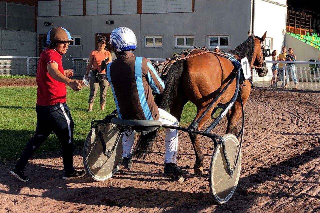 Am Schluss lief Fiddle (mit Etienne) im Hauptereignis, dem Prix de 5ans. Das war für ihn ein Test gegen die besten Fünfjährigen. Und es sah lange gut aus. In der letzten Gegenseite rückte Fiddle auf Rang vier vor und für einen Moment hatten wir den Eindruck, er könnte sogar um den dritten Platz kämpfen. Doch dann zog Fiddle im Einlauf nicht durch. Er ist offensichtlich noch nicht ganz soweit. Die Moral ist das Wichtigste für ihn, daran arbeiten wir in den nächsten Wochen wieder weiter. Fiddle hat aller Voraussicht nach nun bis Ende August Pause (bis dahin hätte er zwei unpassende Startgelegenheiten: Am 9. August über zu lange 3000m und am 23. August auf der kleinen Grasbahn im Innenraum).