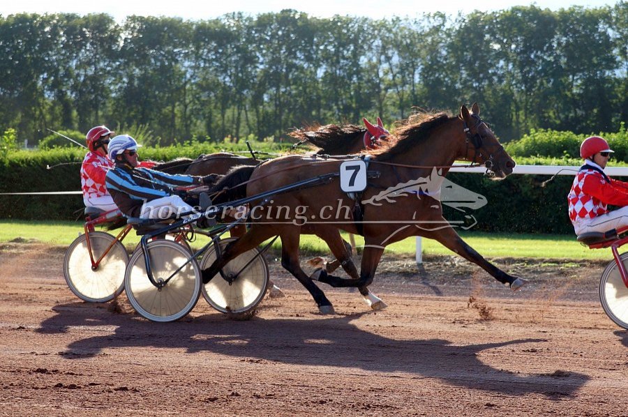 Zuvor war bereits Globi (ebenfalls mit Marcel) sehr gut unterwegs. Er verlor, ganz auf Warten gefahren, hinter müden Gegnern mehrmals Boden, sonst wäre allenfalls mit optimalem Rennverlauf Rang zwei drin gelegen. So lief Globi in 06/07 noch auf Rang drei. Auch von ihm eine weitere gute Leistung. Er zieht jetzt wieder bis zum Schluss durch, was nicht immer der Fall war. Wir sind auch bei ihm zuversichtlich für die kommenden Wochen. Sein nächster Einsatz ist für den 16. August auf Gras vorgesehen.