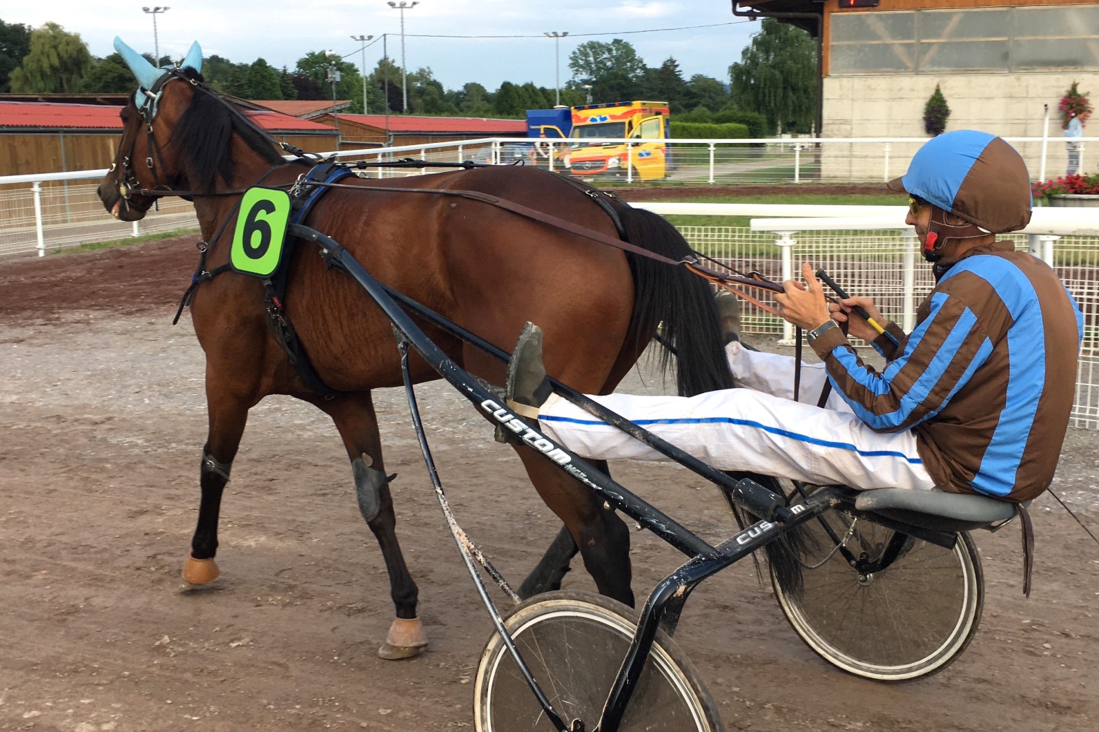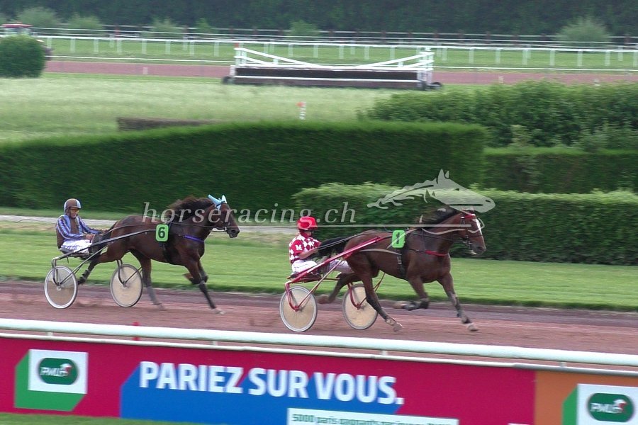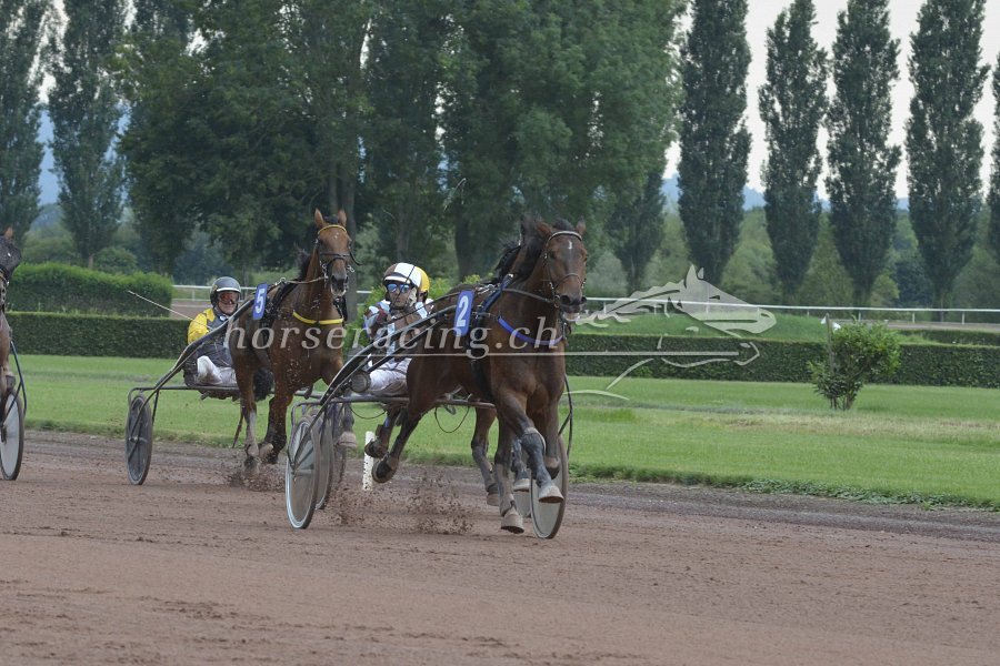 Bei Semola war die Ausgangslage klar. Sie war im Amateurrennen mit Franck Quatreuil klare Favoritin. Für uns war das Wichtigste, dass sie nicht im ganzen Juli ohne Rennen bleibt. Franck fuhr sie an der Spitze und im Einlauf versuchte er wie besprochen zu beschleunigen. Dies tat Semola auch, sie lief ein sehr gutes Rennen und mit 1:14,8 die persönlich schnellste Kilometer-Reduktion jemals auf dieser Distanz (2350 Meter) - doch einer war heute noch stärker. Ugo de Tortière verbesserte als Zehnjähriger seinen Rekord auf 1:14,4 und liess Semola auf den letzten 200 Metern keine Chance. Da kann man nur den Hut ziehen! Dieser "Ugo" ist hat sich offensichtlich auf Semola eingeschossen: 3 Mal sind die beiden nun gegeineinander gelaufen (zweimal noch vor Semolas Allegra-Zeit) und immer hatte der Wallach seine Nase vorn. Wir kennen keinen anderen Gegner, der eine solche Bilanz gegen Semola hat, chapeau!