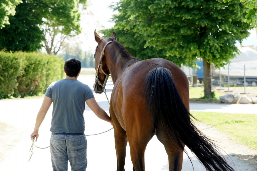 Fiddlesticks mit Loris auf dem Weg zum Paddock.