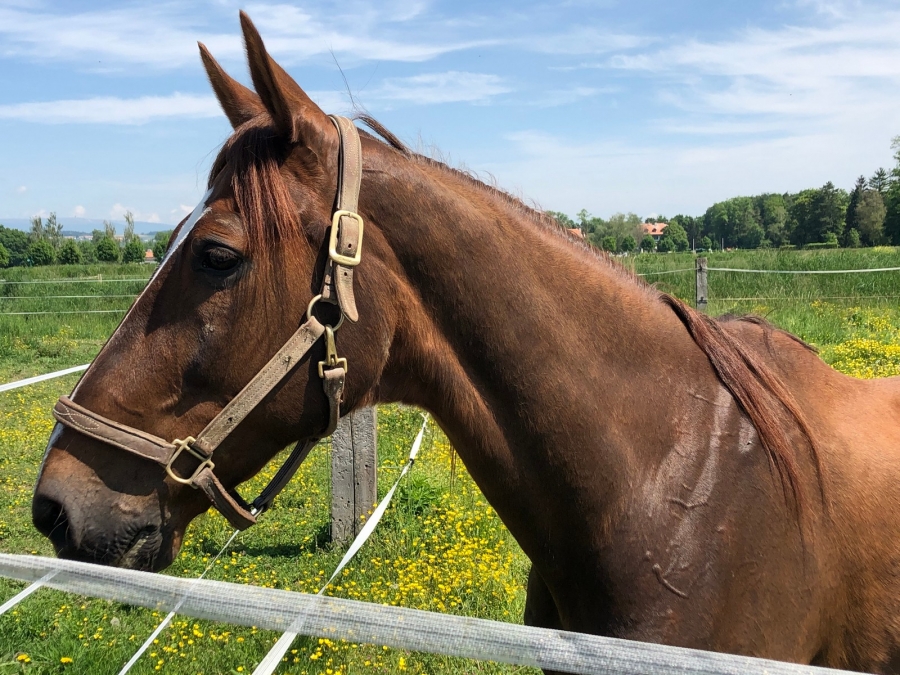 Semola bleibt weit weg auf ihrem Paddock - ja nicht riskieren, in den Stall zu müssen...