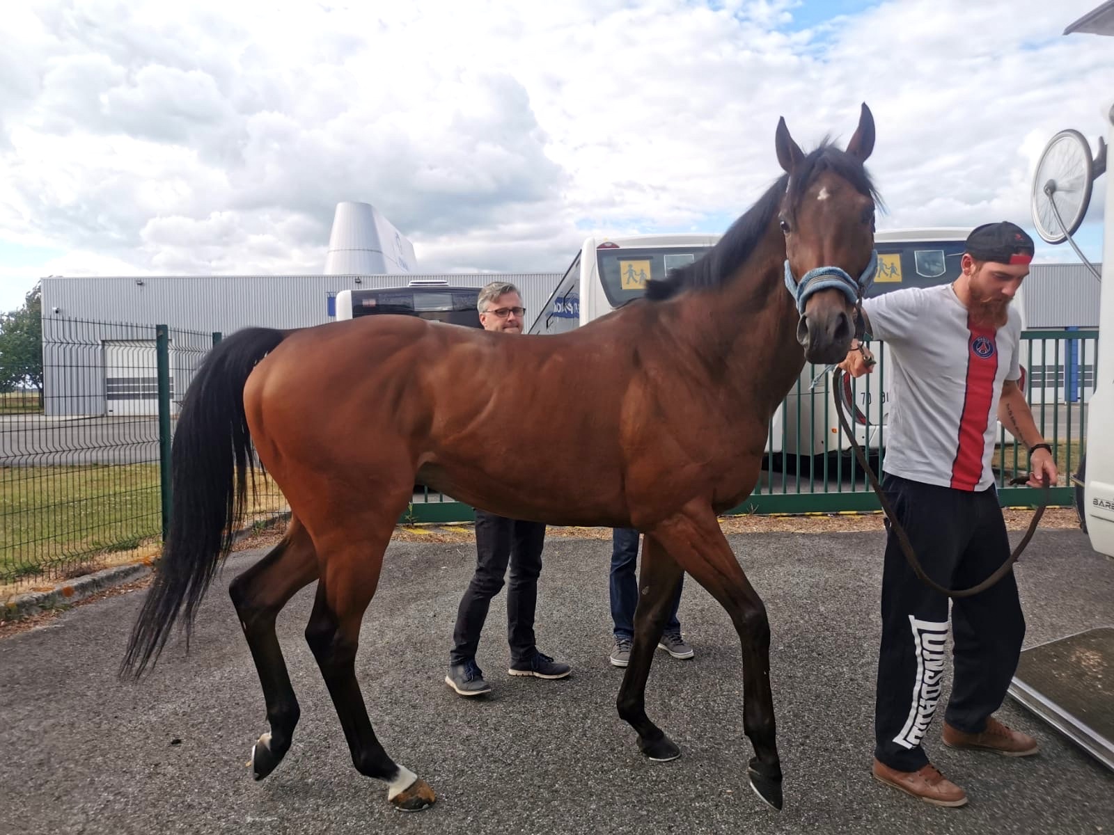 Boogie beim Umladen mit Adrien. Nach drei Wochen in der Boxe sieht er immer noch gut aus...