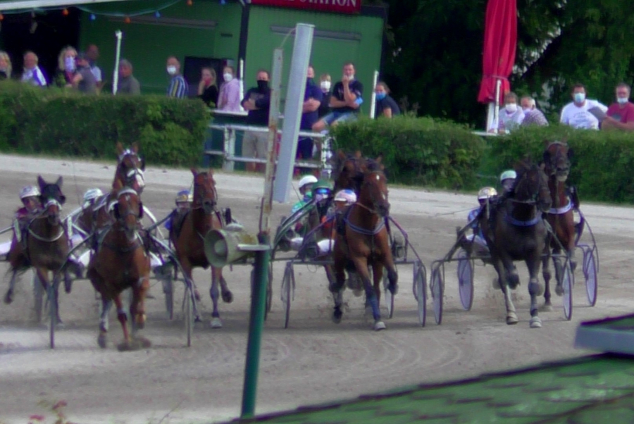 Keine Stunde nach BLACK war dann JACK an der Reihe - a propos Reihe, die zweite hinter dem Auto erwies sich einmal mehr als wenig ideal. Denn Jack musste einem Gegner nachjagen, der sich an der Spitze sein Rennen hatte selbst gestalten können. In der letzten Gegenseite kam eine "Lokomotive" in dritter Spur und Rudi hängte sich dran. Doch im Schlussbogen war Jack plötzlich alleine in dritter Spur (respektive er führte diese an), er musste deutlich mehr Weg gehen als der Leader, der auf mehrere Längen enteilen konnte. Wir begannen uns, über Rang zwei zu freuen, als Jack den Turbo zündete. Und wie! Als wolle er unbedingt im 2020 ungeschlagen bleiben und vielleicht auch uns nach dem Black-Rennen glücklich machen, machte Jack Meter um Meter gut und auf dem Zielstrich hatte er den "Piloten" geschnappt. Um einen Kopf und in neuer persönlicher Rekordzeit von 1.14,6 (für den Sieg heute gab es 2650 Euro; das bislang höchste Preisgeld von Jack).