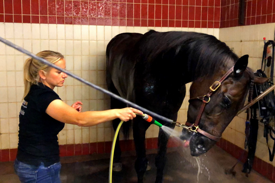 Im Stallgang, wenige Minuten vor seinem zweiten Rennen: Black Jack.