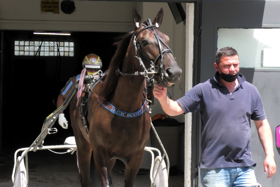 Den Anfang machte Gustavo. Und er macht es von A bis Z sehr gut. Bänderstart erstmals in seiner Karriere? Kein Problem. 25 Meter aufholen? Machten Rudi und er tiptop. Im letzten Bogen sah es noch nicht nach einem Zweiterwetten-Platz aus. Doch dann zündete Gustavo nach bis dahin nicht sonderlich schnell gelaufenem Rennen den Turbo, beschleunigte in der Zielgerade auf 1:10 und dann kurz auf 1:09 - am Ende war er eine halbe Länge vom 25 Meter weiter vorne gestarteten Sieger. 50 Meter weiter hätte es wohl anders ausgesehen. Egal! Gustavo lief bärenstark. Wir sind uns mit Rudi einig: Das war die bisher beste Leistung seiner Karriere. Für ihn geht es nun Anfang August in Berlin weiter, bevor ein Auftritt in der Schweiz geplant ist.