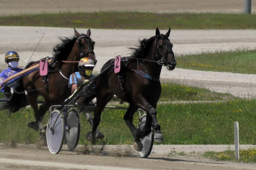 Ein Rennen später dann der Auftritt von Jack. Obschon er in 1:05 und dann sogar 1.04 loslegte, bekam er die Spitzen nicht sofort! Doch in der ersten Gegenseite kam Rudi mit ihm dann "unblutig" in Front. Dort drosselte Rudi das Tempo bis in die Gegenseite, wo eine starke Attacke einer Klasse-Gegnerin erfolgte. Jack war vielleicht etwas überrumpelt von einer solchen Beschleunigung, kam für einen Moment aus dem Rhythmus (im dümmsten Moment...) und musste einiges investieren, um die Spitze vor dem letzten Bogen nicht abgeben zu müssen (der Mini-Fehler kam bei Tempo 1:12 zustande, Jack musste danach bis 1:09 aufdrehen). Durch den Schlussbogen ging es in 1:10; 1:11 und 1:13. So war dann im Einlauf nicht nochmal eine Beschleunigung möglich - jedenfalls für Jack heute nicht. Seine Gegnerin, die deutlich erfahrener und halt auch tempofester ist, zog schliesslich noch vorbei. Obschon, und das war toll zu sehen, Jack bis am Schluss kämpfte. Wir sind überzeugt, dass ihn genau solche Rennen weiterbringen.