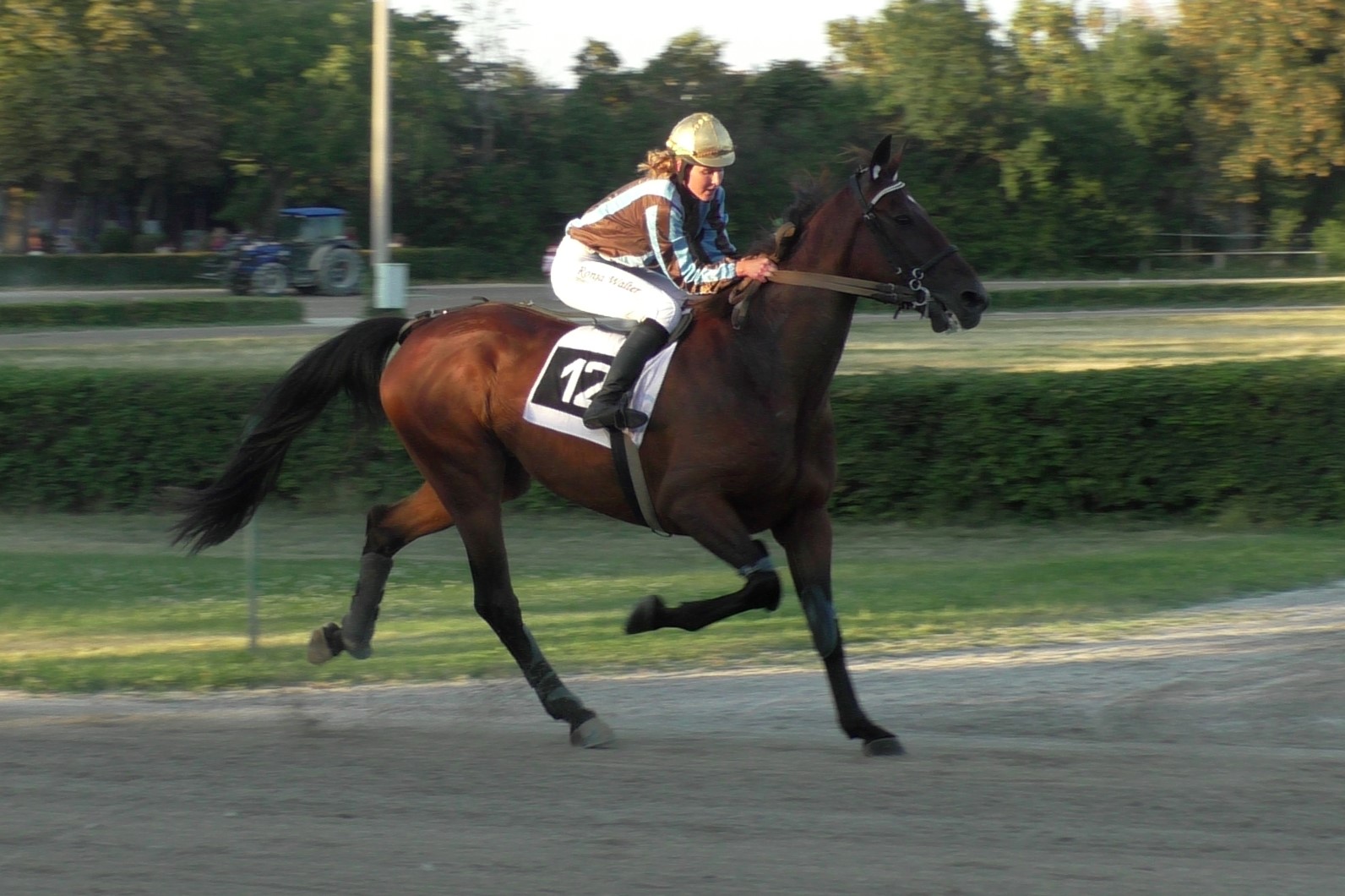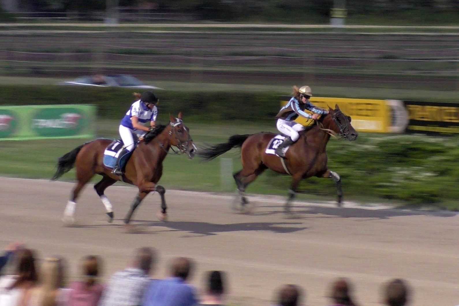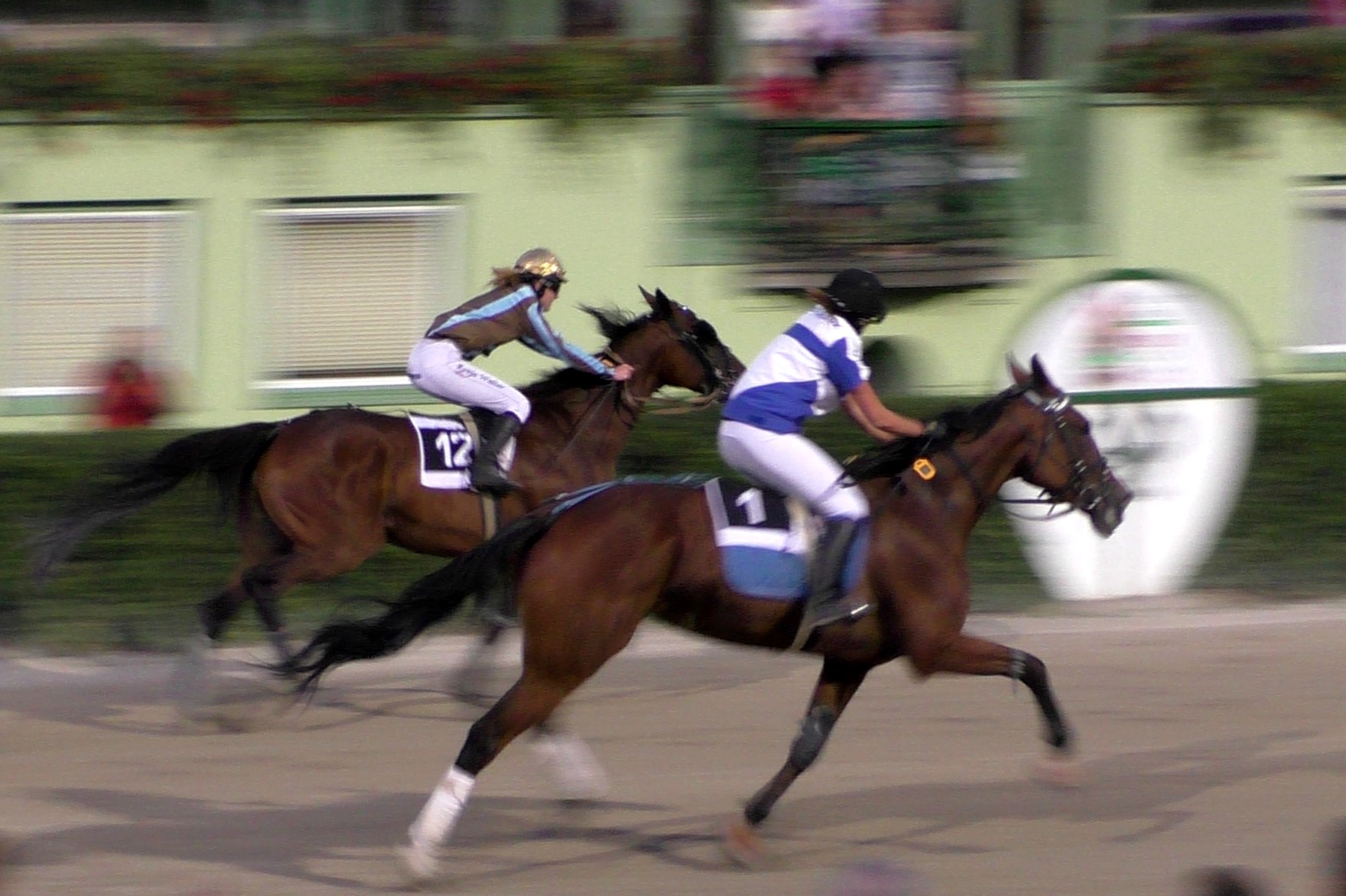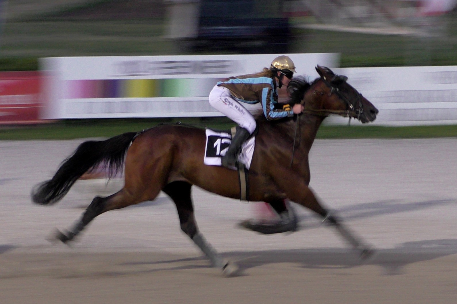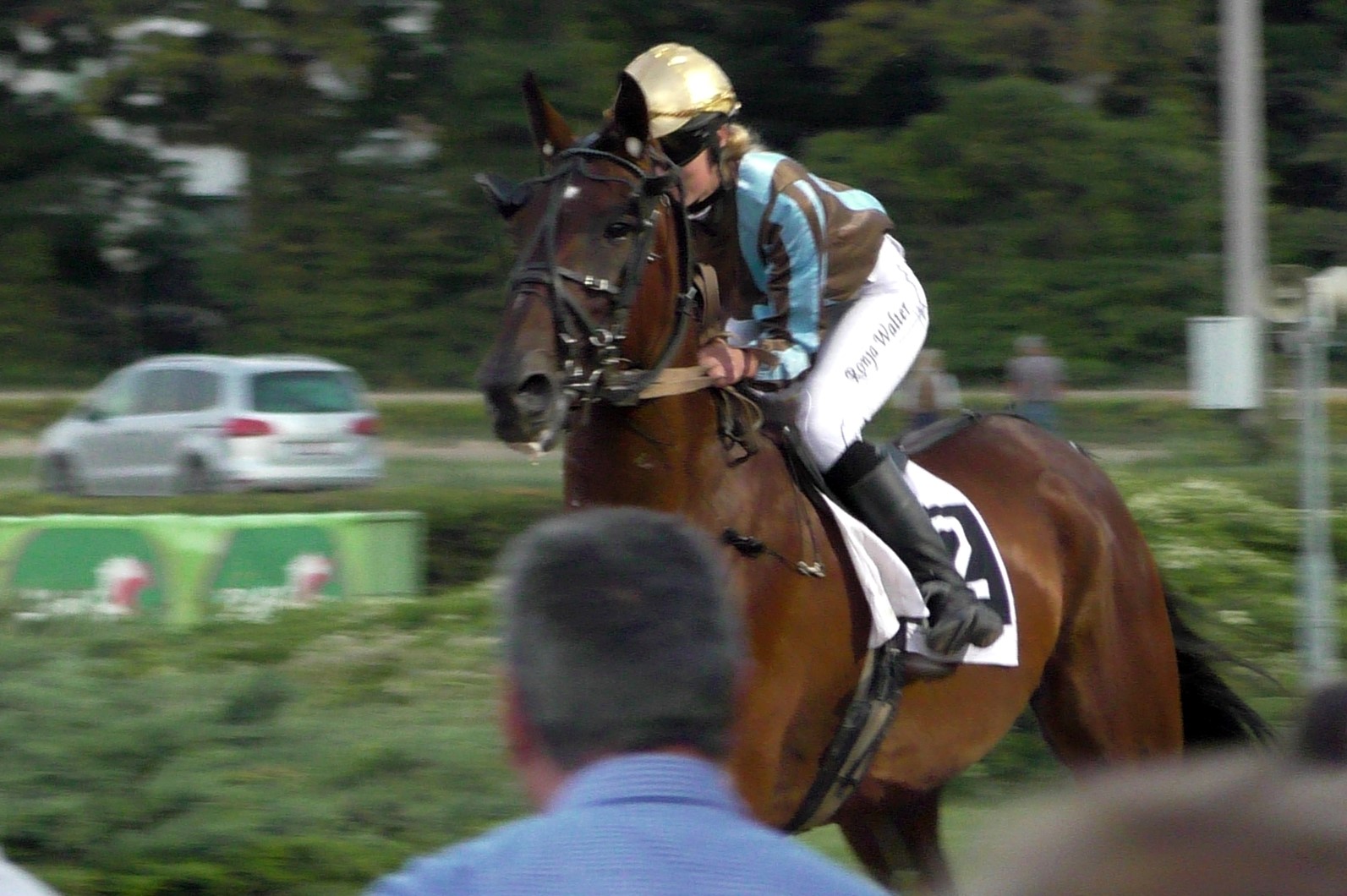 Top Winner ist nun also tatsächlich ein "Top Wiener", auch wenn die Veranstalter natürlich Badener sind und keine Wiener. Vor allem aber war die aus Hamburg angereiste Deutsche Monté-Championne Ronja Walter heute eine Klasse für sich. Top hatte mit 50 Meter Starthandicap gestartet von Anfang an eher Mühe. Eine Runde vor Schluss sah er alles andere als wie der Sieger aus. Und in der Gegenseite wurde er überholt, statt aus dem Mittelfeld (endlich, so unsere Hoffnung...) aufzurücken. "Da hatte ich nicht das Gefühl, gewinnen zu können. Dann habe ich die Watte gezogen und von da an geschrien, ich bin noch ganz heiser...", sagte (oder flüsterte) Ronja Walter hinterher. Nun, sie musste ja nicht nur schreien, sondern im letzten Bogen innen durch (!) einen Weg finden, Top auch sonst motivieren und kräftig vorwärts reiten. Dies alles tat sie so gut, dass Top die enteilte Riesen-Aussenseiterin Lendeva (die 50 Meter weiter vorne gestartet war) tatsächlich noch stellen und ganz knapp bezwingen konnte.