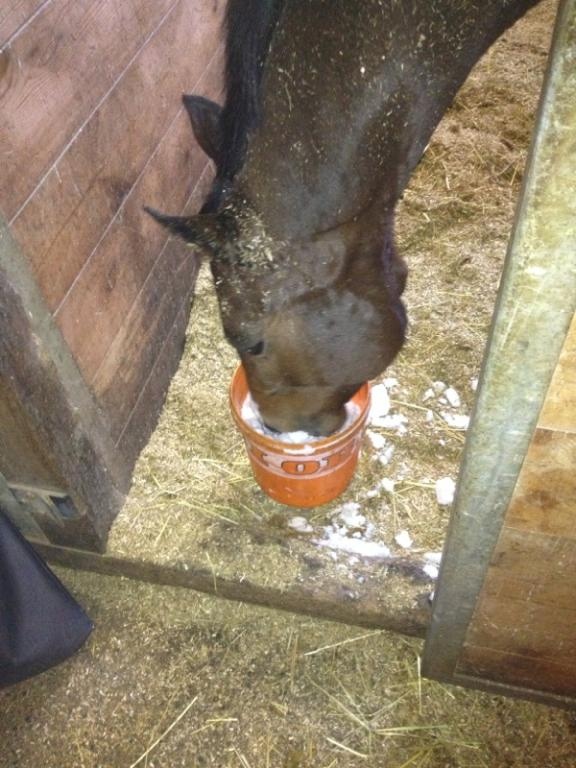 So macht Schnee jedem Pferd Spass: Apfel gefunden und gleich gefressen!