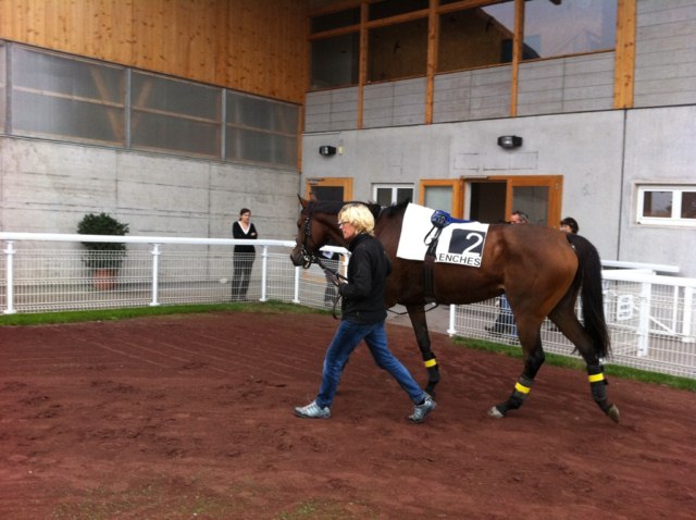 Roma vor ihrem Avenches-Einsatz (Natalie als Pferdeführerin und Trainerin in Personalunion)