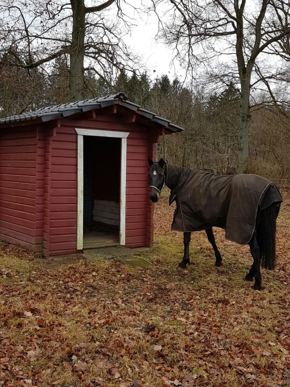 Timoa geniesst die grosse Weide mit typischem Häuschen bei Olaf nördlich von Hamburg.