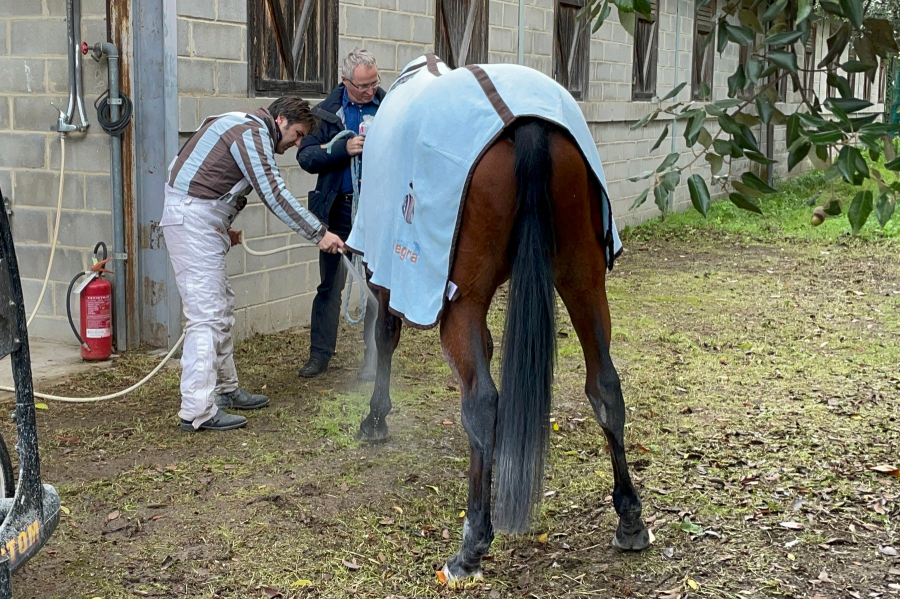Roter Teppich für die Pferde des Gruppe-Rennens, im separaten Stalltrakt untergebracht.