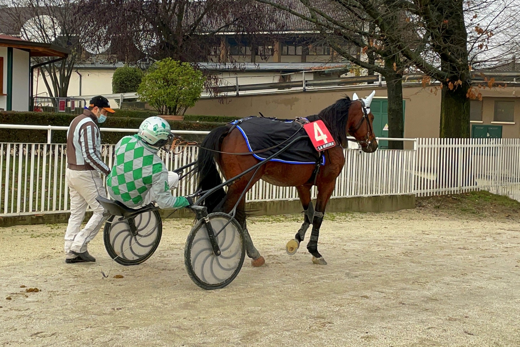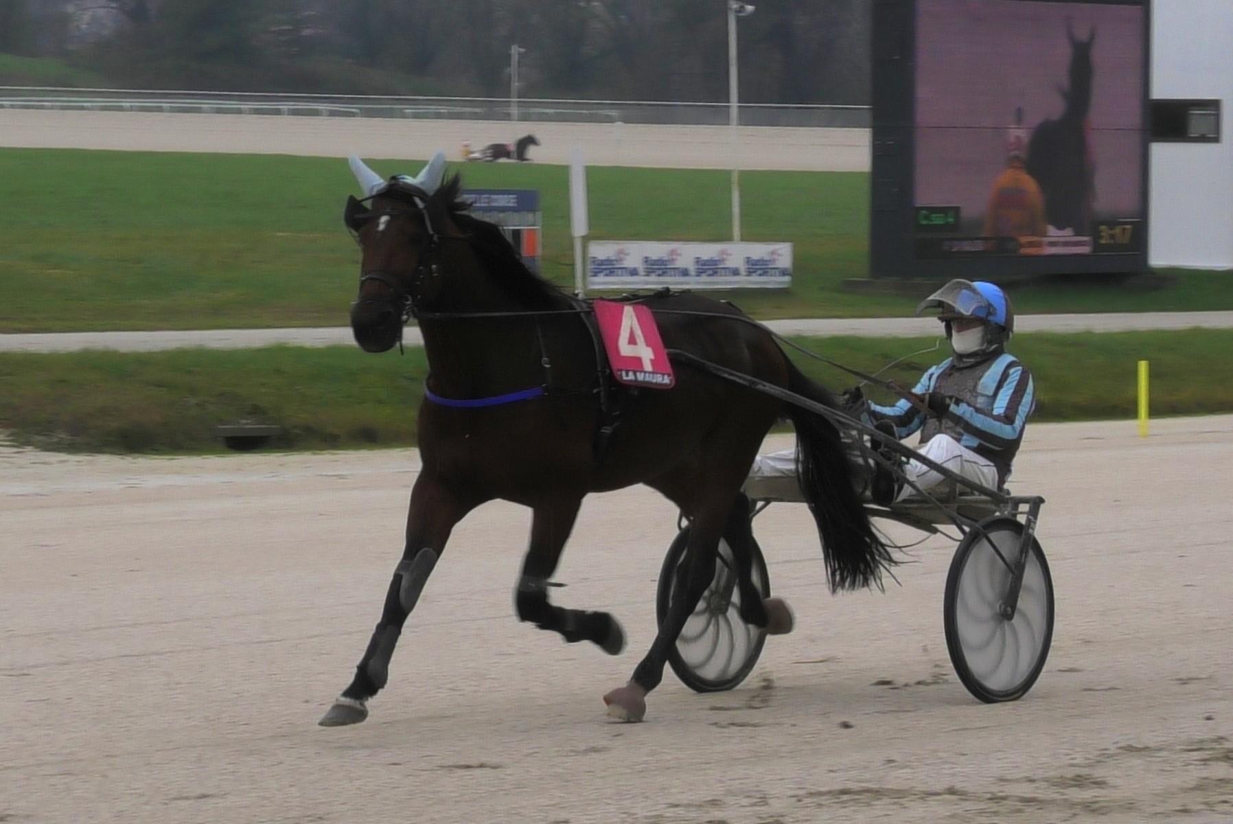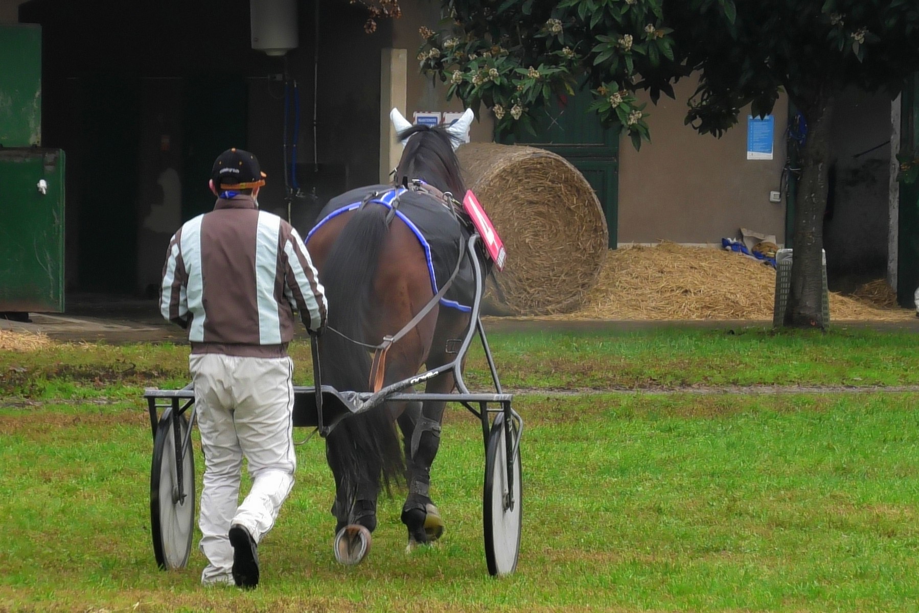Zweiter Heat für Vessillo: Auf der Bahn und diesmal mit Andrea im Sulky.