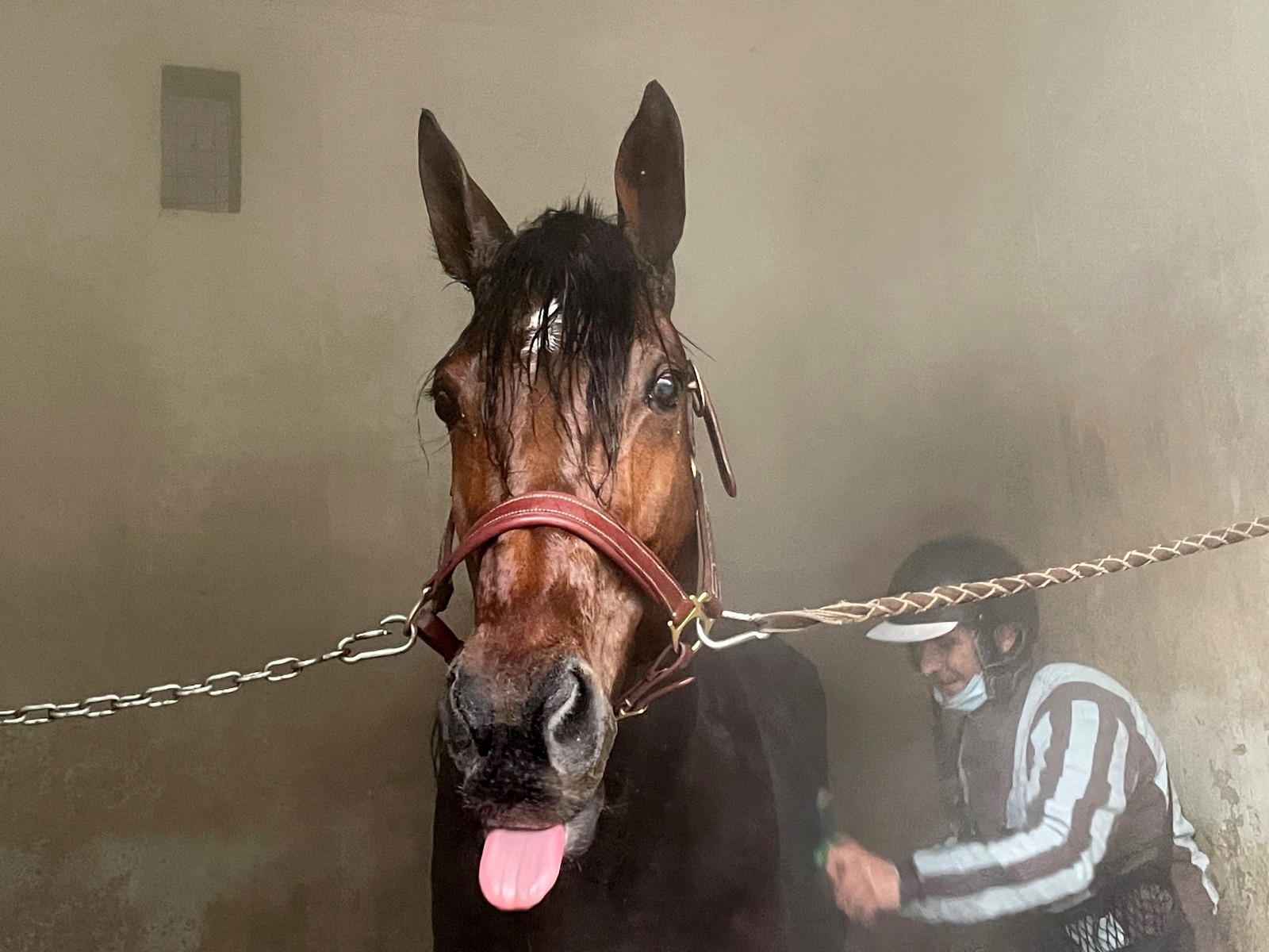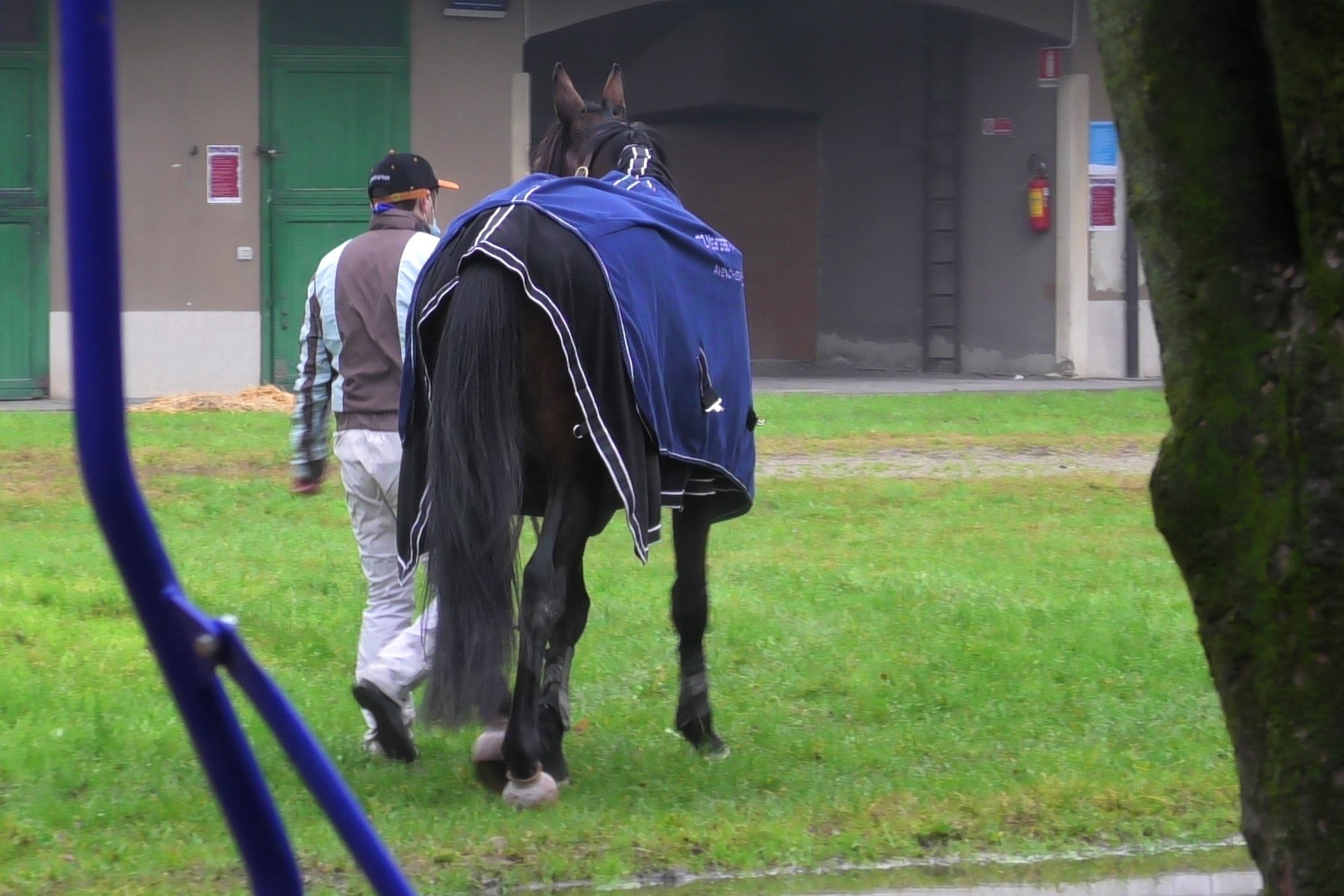Bei sechs Gegnern spielt der Rennverlauf keine so grosse Rolle, meint man oft. Nun, mit etwas mehr Rennglück, hätte Vessillo heute den Favoriten im 14'300-Euro-Einladungsrennen über 2700m (+20) noch mehr in Bedrängnis gebracht. Er startete gut, doch kurz nach dem Start galoppierte vor ihm ein Gegner und gleichzeitig kam der grosse Favorit "unblutig" an die Spitze. Andrea blieb nichts anderes übrig, als Vessillo an letzter Stelle des kleinen Feldes zu positionieren. Dort warteten die beiden geduldig. Eine Taktik, die sich schon in der Meisterschaft ausbezahlt hatte. In der letzten Runde stürmte Vessillo vor, doch ein Gegner schaffte es, ihn aussen zu halten und weitere Wege laufen zu lassen (vor allem durch den letzten Bogen). Wer nun aber gedacht hatte, Vessillo klinke sich in der Zielgerade nach dem Effort aus, sah sich getäuscht. Er beschleunigte nochmal und kam bis auf etwa eine Länge an den grossen Favoriten (20-facher Sieger) heran. Top, echt stark! Die letzten 800 Meter wurden vom Sieger (umgerechnet auf den Kilometer) in 1:12,0 gelaufen: Will heissen, dass VESSILLO auf dem letzten Abschnitt eine 11er-Zeit in den Sand trommelte, denn er musste ja aussen herum und machte klar Boden gut auf den Sieger.