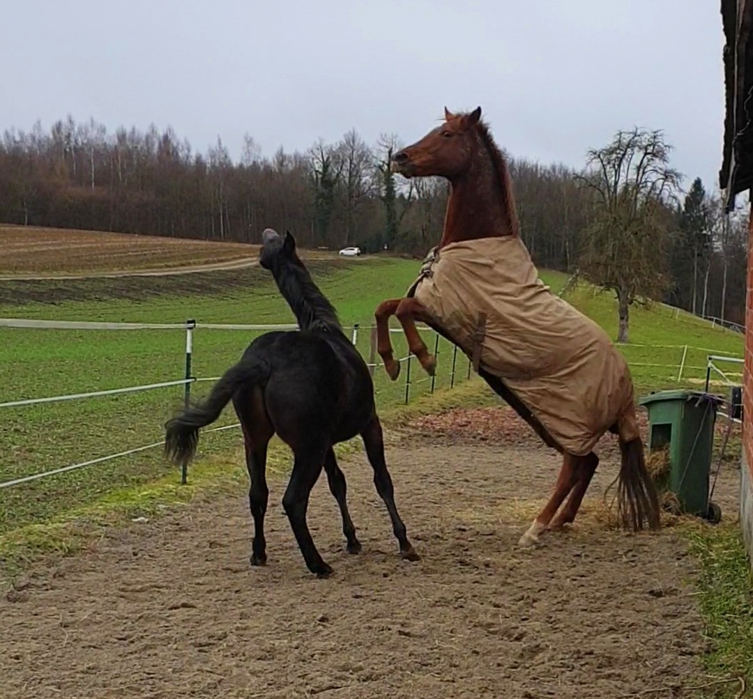 Es war Liebe auf den ersten Blick, als Natalie und Markus Ende Juli 2008 in Köln bei Peter Schiergen AIAKOS sahen. Spannende Abstammung (kostete als Jährling 80'000 Euro), gewisses Potential in den Rennen schon gezeigt. Aber die (zu) hohen Erwartungen halt nicht erfüllt. So landete er bei uns, kam zu Natalie nach Dielsdorf.