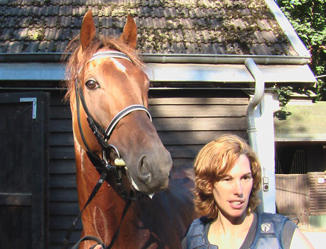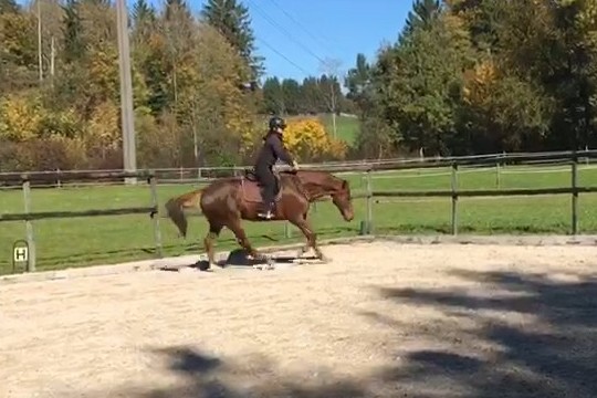 Und weiter: "Im Dezember 2012 war es soweit. Aiakos beendete kerngesund seine Rennkarriere und zog bei uns ein. Im ersten Jahr habe ich mit ihm nur Bodenarbeit gemacht, ihn dressurmässig an der Hand ausgebildet – bis hin zur Piaffe – oder als Handpferd mit ins Gelände genommen. Aiakos ist für alles zu haben. Er gibt sich immer und bei allem stets grosse Mühe. Eine grosse Herausforderung für mich war es, sein äusserst sensibles Wesen, einhergehend mit grosser Unsicherheit und Selbstzweifeln, mit seiner Leistungsbereitschaft und dem Wunsch zu gefallen, in Einklang zu bringen. Er hat mich gelehrt immer genau hinzusehen und hinzufühlen, das psychische Wohlbefinden des Pferdes über alles zu stellen. Dafür werde ich ihm immer dankbar sein. Wir haben an verschiedenen Kursen teilgenommen und sind auch einmal an einem Patrouillenritt gestartet. War dann aber nicht so unseres..."