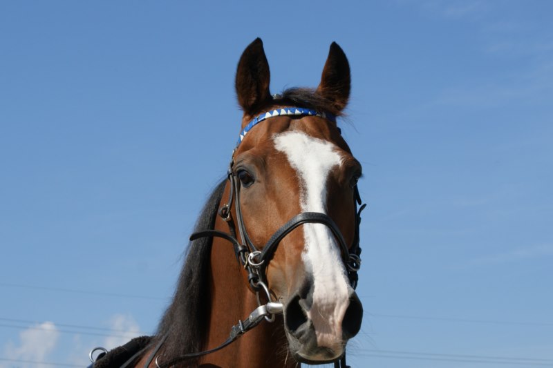 Mit gespitzten Ohren auf der Sandbahn gleich neben den Stall, wo Konditionsarbeiten gemacht werden.