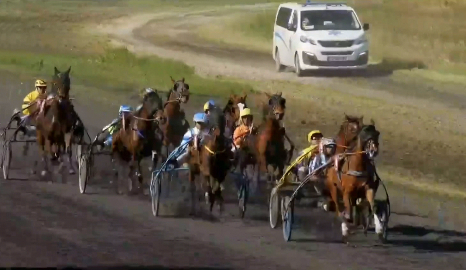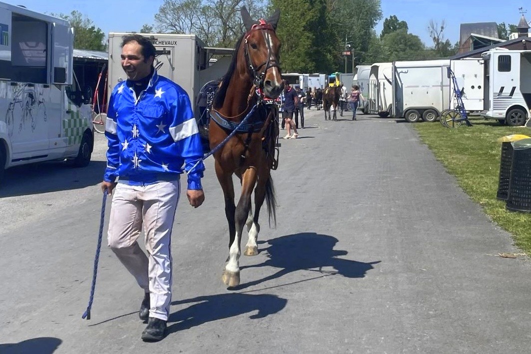 Wir hatten uns wiederholt bei den Aussagen über LOUDÉSIR. Zu Hause ganz ein braver Kerl, der nicht weiss, wie man galoppiert. Auf der Rennbahn klappte es dreimal (einmal im 2024 in Avenches, zweimal dieses Jahr in Frankreich) mit den Starts nicht. Heute nahm sich Gabriele Gelormini erstmals LOU an und die beiden harmonierten bestens. Nach dem Heat, der zu gefallen wusste, nahm Gabriele noch die eine oder andere Änderung an der Ausrüstung vor (Top-Piloten sind wie ihre Kollegen in der Formel 1, die spüren was zu tun ist am "Gefährt") und siehe da, LOU startete sehr gut. Schon beim Fehlstart war er gut weggekommen und dies gelang auch, als es ernst galt.