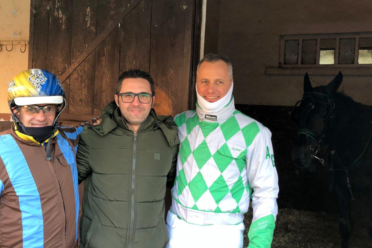 Loris mit Amateur-Driver Vittorio Bosia und Trainer Andrea Guzzinati.