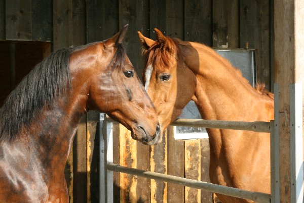 Begrüssung des Boxennachbarn Sueno (ungeprüfter 3j.Vollblüter)