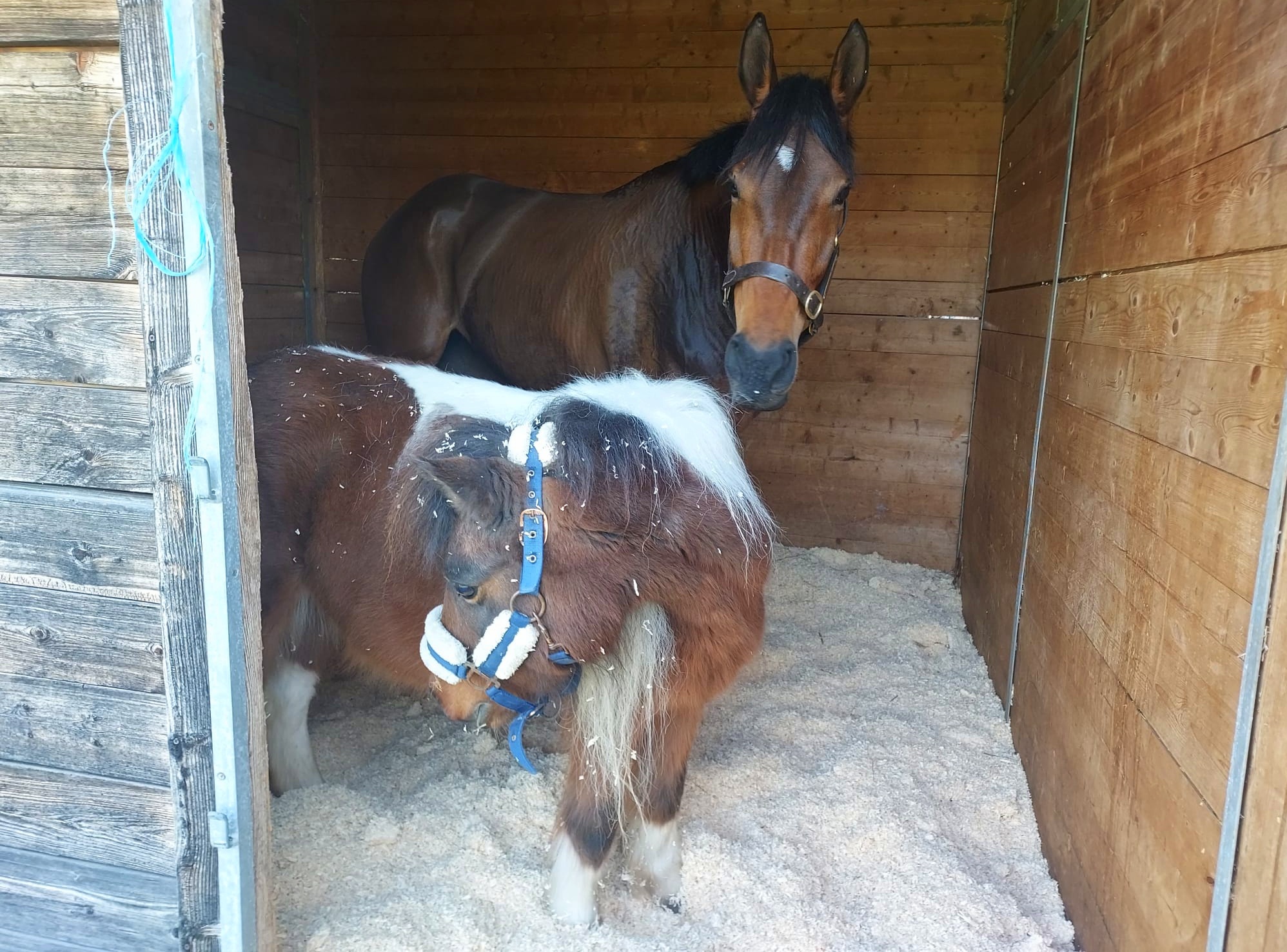 Zara mit ihrer Pony-Freundin Plume vor dem Rennen.