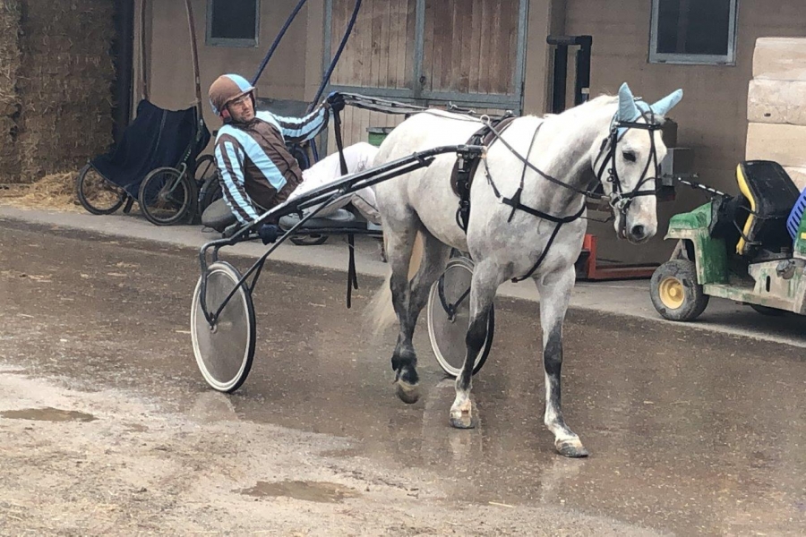 Im ersten Rennen war Vento am Start. Wir waren sehr gespannt, wie er ohne Hintereisen laufen würde. Loris hatte sich dazu viele Gedanken gemacht und war ziemlich sicher, dass diese Konfiguration Vento mit seiner Gangart helfen müsste. So war es dann auch! Vento machte ganz zu Beginn einen kleinen Fehler, trabte dann aber schnell los und hatte die 25 Meter Starthandicap bald wettgemacht. Das Tempo war bei der ersten Tribünen-Passage recht flott (zu Beginn 1:16, dann 1:14 und 1:15, dann sogar 1:11 und 1:12). Klar, dass im zweiten Bogen und auch in der Gegenseite dann mehrheitlich gebummelt wurde (zwischen 1:18, und 1:16, mehrhelitch über 1:20). Im letzten Bogen rückte Loris dann auf und im Einlauf liess er Vento beschleunigen. Wir glaubten kaum, was wir auf der Auswertung des GPS sahen: 1:11 zu Beginn des Einlaufs, dann 1:09, 1:08 und schliesslich 1:07 - dann 1:09, 1:10 die längste Zeit, nochmal eine Beschleunigung auf 1:08 zu Beginn des alten Führrings und schliesslich 1:10 bis fast ins Ziel. Dies alles, ohne dass Loris Vento überhaupt aufgefordert hätte, er hielt einfach die Zügel fest... 7 Längen Vorsprung, unausgefahren und nach 25 Meter Starthandicap! Loris war begeistert: "Was wird das nur für ein gutes Pferd! Vento ist noch ein Baby, aber er verbessert sich stetig. Man darf nicht vergessen, dass er jung wegen eines Weideunfalls einige Zeit verlor und noch nicht so lange regelmässig konsequent trainiert wird." Vento bekommt nun ein paar Wochen verdiente Pause, denn er lief ja nun innert 3 Wochen drei Mal.