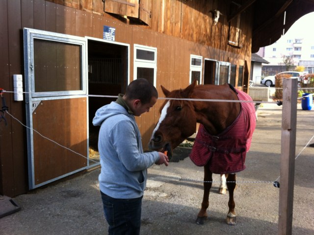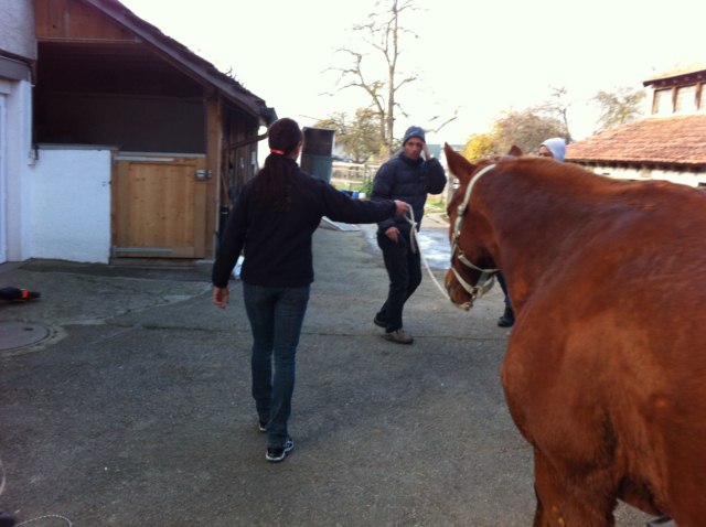 Einen solchen Abschiedsmoment erlebten wir im Stall Allegra am letzten Samstag. ONE of the Best stieg in den Transporter, Claudia, Heinz und Robin brachten ihn zu Stephi nach Niederbipp. Dort hat er viel Platz, nette Leute und Kumpels um sich - und bald folgt ihm auch Michigan (der nach einer Hufverletzung die Rekonvaleszenz-Zeit noch zu Hause verbringt, Ende November/Anfang Dezember dann aber ebenfalls zu Stephi zügelt). Ein Novum, dass zwei Allegra-Pferde quasi im Doppelpack einen neuen Lebensplatz gefunden haben!