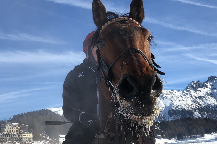 Das Jahr 2020 begann schon in St. Moritz mit zwei Pechvögeln. Am dritten White Turf-Sonntag hätten unsere beiden aus Paris angereisten Galopper beide ein ganz gewichtiges Wörtchen um den Sieg mitgeredet - wenn nicht einiges Pech genau dies verhindert hätte. Zunächst rutschte bei Zock der Sattel, weshalb Eddy in der Zielgerade nicht Finish reiten konnte (Rang zwei, unangefasst). Und danach wurde im Skikjöring Vienna gleich beim Start fahrerlos, nur um anschliessend locker weit vor allen Gegnern ins Ziel zu galoppieren.