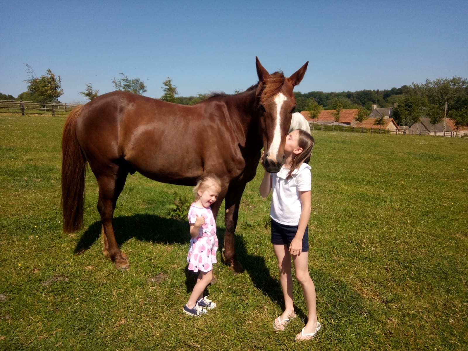 Vegas mit den Enkelinnen der Züchter in der Normandie.
