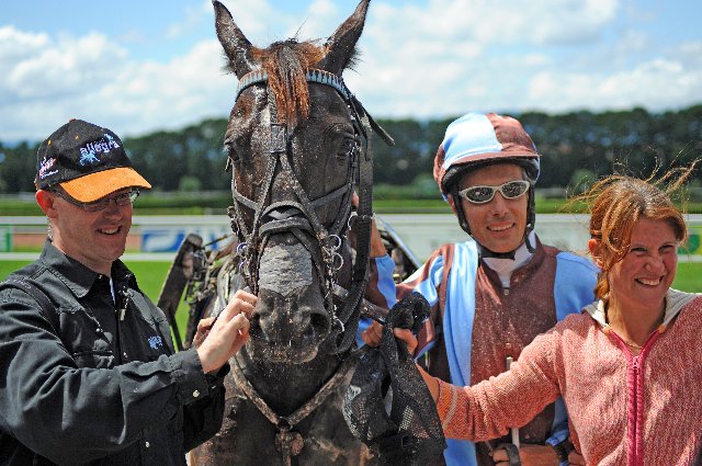 Siegerrunde: Claudia, Heinz, Toni (alias Mon Tonnevillais) und Markus (v.r.n.l) im winner circle.