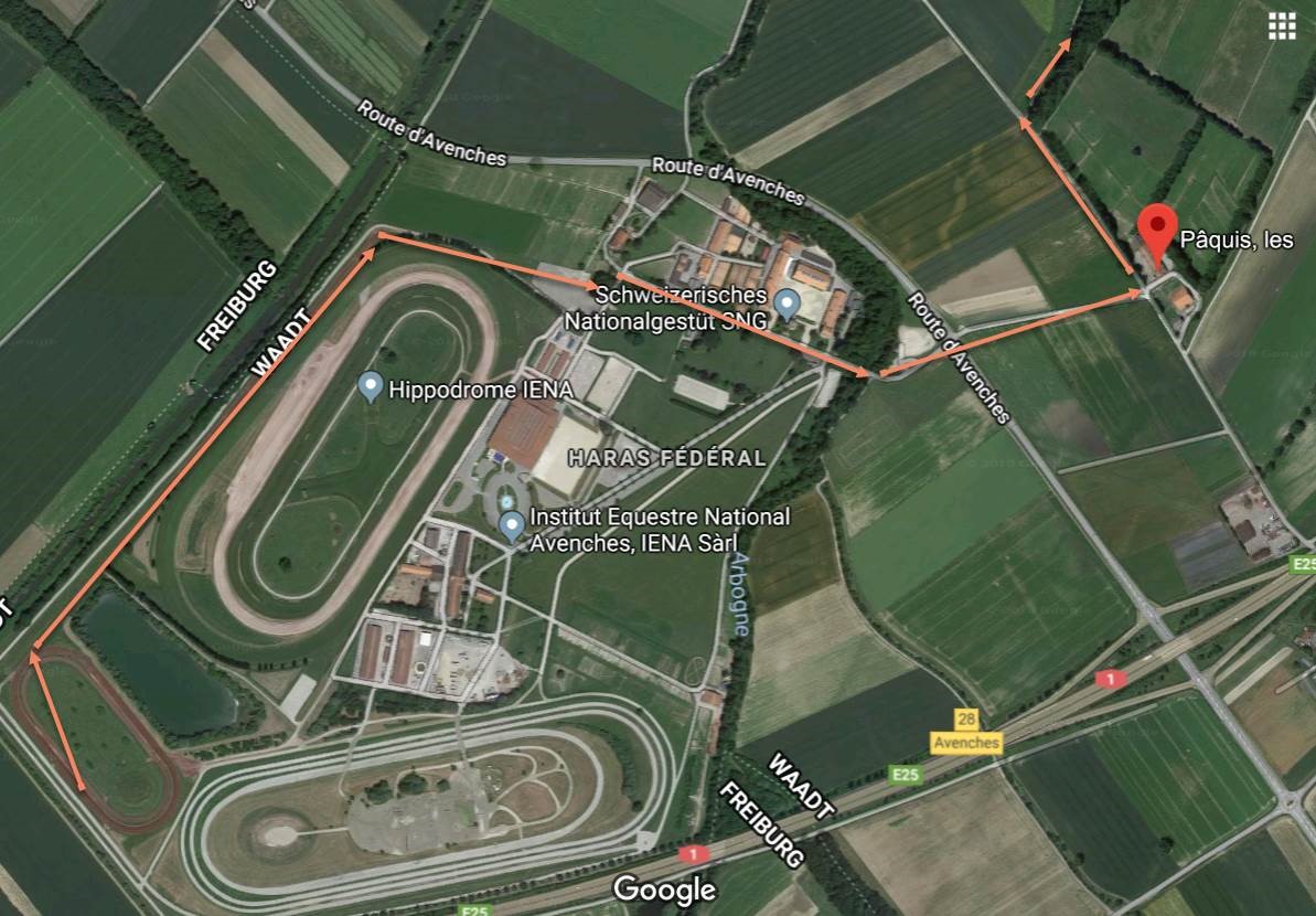 Heute Donnerstag-Vormittag, 8.3.2018, ereignete sich auf der Trainingsanlage des Institut Equestre National Avenches, wo auch Marcel und Loris unsere Pferde trainieren, ein Zwischenfall der besonders ärgerlichen, unnötigen und gefährlichen Sorte. Marcel war ausser sich, als er davon berichtete: "Ich sass im Sulky von Rebus und hatte Globi als Handpferd dabei, alles lief tiptop, beide waren ruhig und gut drauf. Dann plötzlich kam von ausserhalb der Anlage ein Jagdhund auf uns zugerannt. Globi bekam solche Angst, dass er von Rebus weglief, mir den Strick aus der Hand riss und wegrannte." Und weg, heisst beim Fluchttier Pferd meistens nach Hause - sofern sie wissen, wo sich dieses befindet. Globi wusste es haargenau. Er rannte in einem Höllentempo die lange Gerade runter, dann über den Transporterparkplatz, an der Klinik vorbei (auf dem Asphalt)... Marcel wusste natürlich, dass Globi anschliessend die Hauptstrasse würde überqueren müssen. Und dies tat er denn auch - zum grossen Glück kollidierte er nicht mit einem Auto (man muss wissen, dass die Autos auf dieser Kantonsstrasse oftmals mit hohem Tempo unterwegs sind und die Fahrer kaum gross nach links oder rechts schauen). Im Normalfall wäre Globi dann bald zu Hause gewesen. Doch weil derzeit die Verbindungsstrasse zum Stallkomplex saniert wird, wo auch Marcels Pferde stationiert sind, waren genau heute grosse Baumaschinen beim Eingang zum Innenhof. So bog Globi links ab und rannte in einen Wald. Dort konnte ihn zum Glück ein Spaziergänger-Paar anhalten.