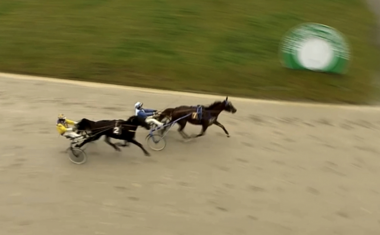 In Straubing hatte Fétiche sofort die Spitze. Aus dem ersten Band sehr gut gestartet, blieb Rudi keine andere Wahl, als vorne Tempo zu machen. Auch wenn Fétiche unseres Erachtens besser ist, wenn er eben nicht von vorne geht. Vor dem letzten Bogen kam dann der Angriff der einzigen ernsthaften Gegnerin im Feld - und vor lauter Schreck (oder weshalb auch immer) zeigte Fétiche eine kleine Galopp-Einlage, war aber sofort wieder im Trab. Durch den letzten Bogen kämpfte er nochmal dagegen, doch in der Gerade war seine Gegnerin bald an der Spitze. Weil diese am Ende nachliess und Fétiche nochmal zurück kam, betrug der Abstand im Ziel nur eine Länge.