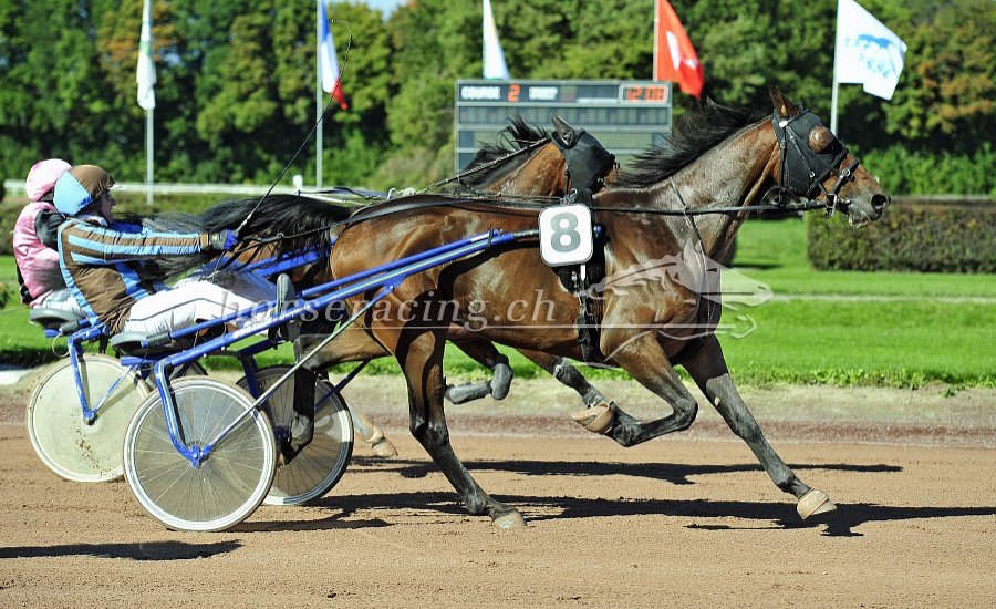 Gleich im ersten Rennen lief Canone. Loris wollte ihr einfach ein Moral-Rennen geben, ohne zu forcieren. Deshalb behielt sie auch alle ihre Eisen an den Hufen, zum ersten Mal auf der Sandbahn von Avenches. Doch das Rennen verlief so, dass Loris gar nicht anders konnte, als das Geschenk einfach dankend anzunehmen. Denn nach 2000 Meter Bummeltempo und dann 500 weiteren Metern Anlauf, kam es zu einem Sprint. Diesen zog Canone aus dem letzten Bogen heraus von selbst an ("sie wollte einfach gehen, ich habe ja gar nichts gemacht", wunderte sich Loris) und innert 100 Metern hatte Canone ihre Gegner locker im Griff. Tolle Vorstellung einmal mehr von Canone. Und ja, Moral hat sie in diesem Rennen mit Sicherheit getankt. Nun soll es für sie am 21. Oktober in Avenches weitergehen, dann in einem 20'000er mit einigen sehr starken Gegnern - aber sie muss ja nicht immer gewinnen...