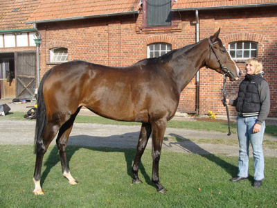 Die bisher von Andreas Wöhler (Ravensberg bei Gütersloh) trainierte Fünfjährige hat am Mittwoch (4.11.2009) nach zwölfstündiger Fahrt eine Boxe im Trainingszentrum Dielsdorf bei Natalie Friberg bezogen.