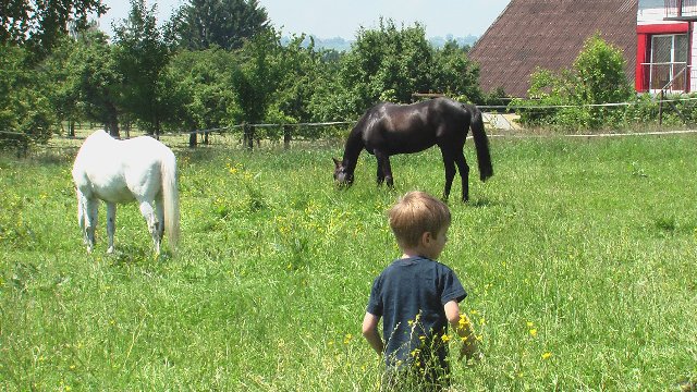 Grosse Weide mit saftigem Gras - auch Robin ist mit zu Besuch...