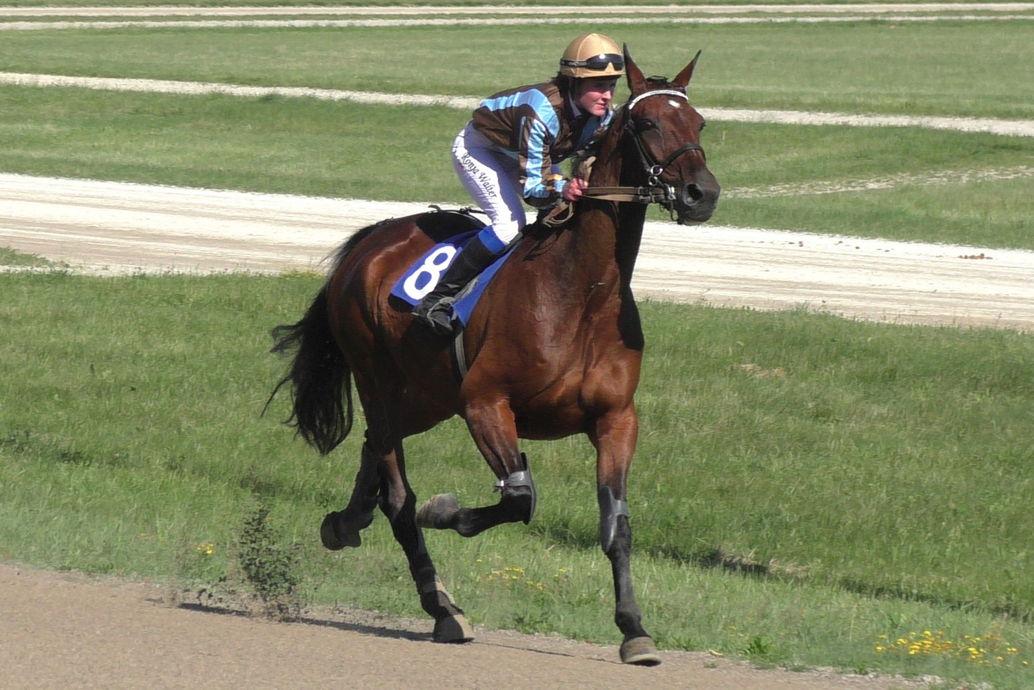 Natürlich ist es nicht ganz einfach auf einer kleinen Bahn in einem grossen Feld (eben, 14 Starter) bis zu 50 Meter Starthandicap aufzuholen. Doch Top ist top zwäg und mit der Deutschen Monté-Championne Ronja Walter, die in Daglfing zuletzt für uns gewonnen hat, haben wir eine der besten Reiterinnen im Feld...