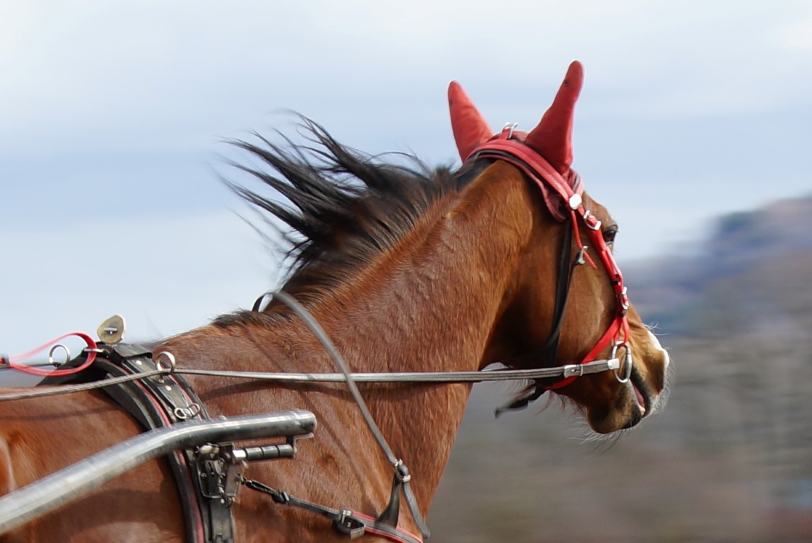 Hier ist er nun schneller unterwegs, die vom Fahrtwind aufgestellte Mähne zeigt es an...
