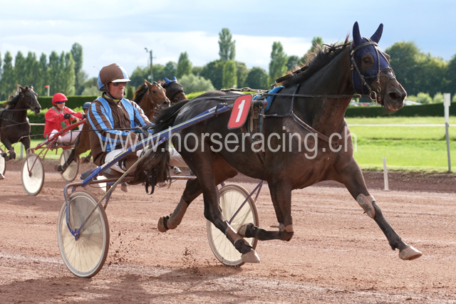 Beim Start ging Marcel kein Risiko ein, platzierte Timoa im hinteren Teil des Feldes und wartete einfach einmal zu. Schon Ausgangs des ersten Bogens waren zwei der auf dem Papier stärksten Gegner nicht mehr im Rennen. Dann der Schreckmoment, es wurde zu Beginn der ersten Tribünen-Passage eng für Timoa, sie streifte das Sulky eines Gegners und fiel in Galopp - nur kurz, Marcel hatte sie sofort wieder in Trab. Nun wissen wir also, dass sie auch im Rennen galoppieren kann, aber grundehrlich sofort wieder trabt.