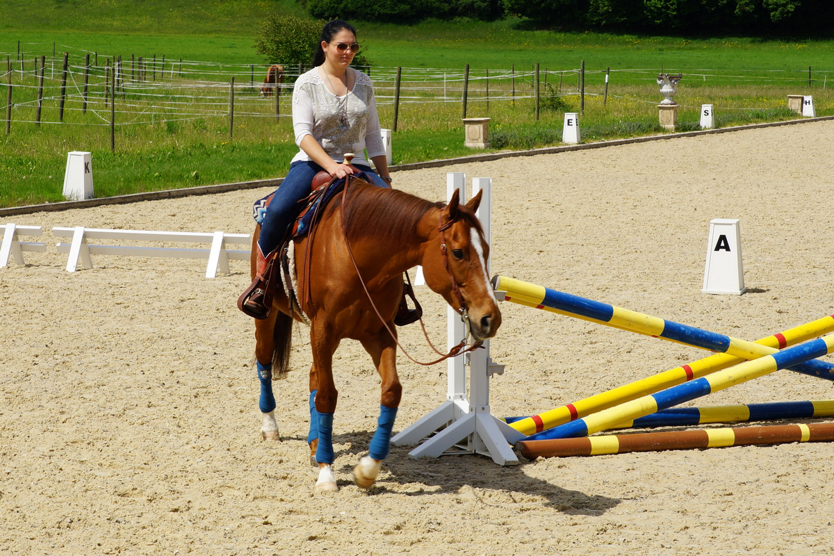 Ungewohnter Sattel, langer Zügel - Kugelblitz hat schnell gelernt...