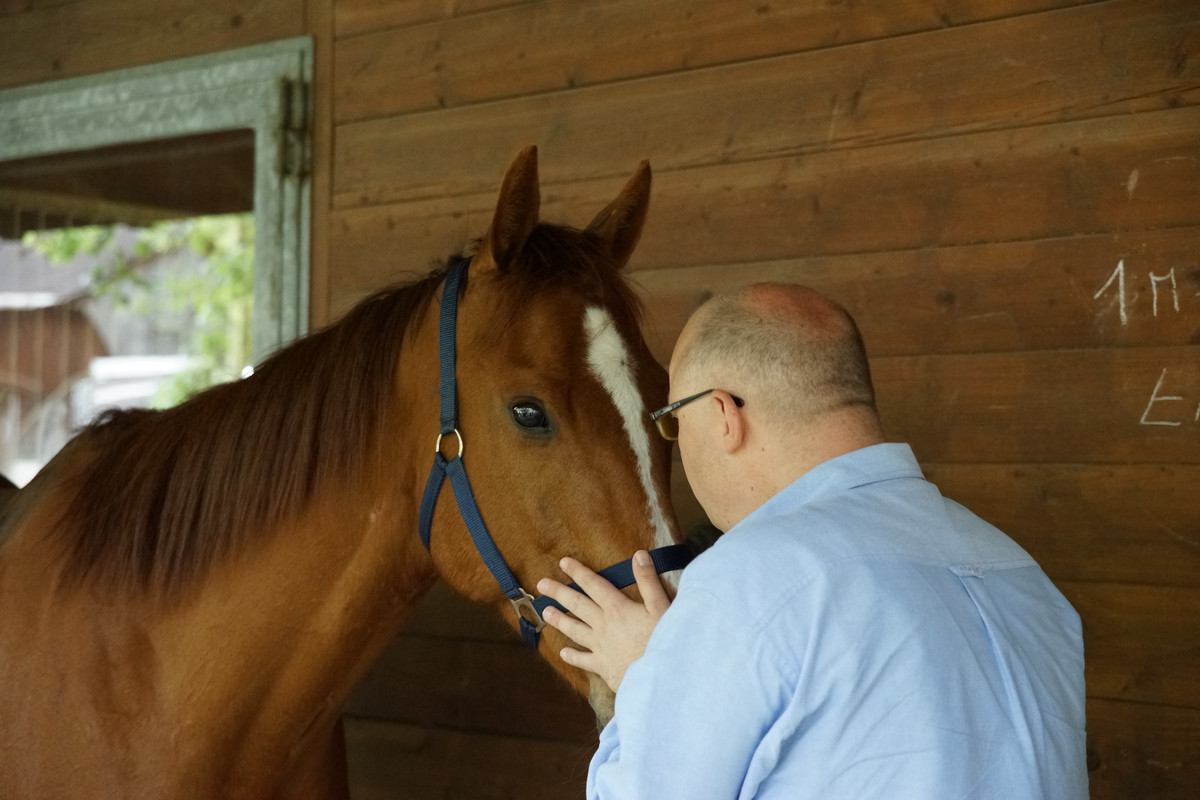 Eine Allegra-Delegation hat Stephie und Kugelblitz gestern Sonntag vor den Aarauer Rennen besucht. "Kugelfuchs" wohnt unweit von der Rennbahn, auf der anderen Seite der Aare auf Erlinsbacher Boden - so nah, dass er die Lautsprecher hört während der Rennen...