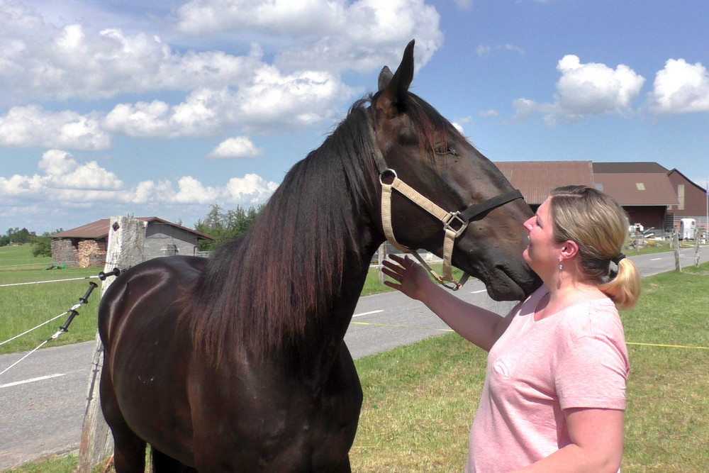 Deshalb freuen wir uns, einen weiteren Ex-Allegra an einem schönen Ort zu wissen. Uri hat vom Kanton Baselland in den Thurgau gezügelt. Nadja heisst seine neue Besitzerin. Sie ist zusammen mit Roli, dem Chef des Stalles Happy (ja, der Stall heisst wirklich so!), die wichtigste Bezugsperson für ihn.