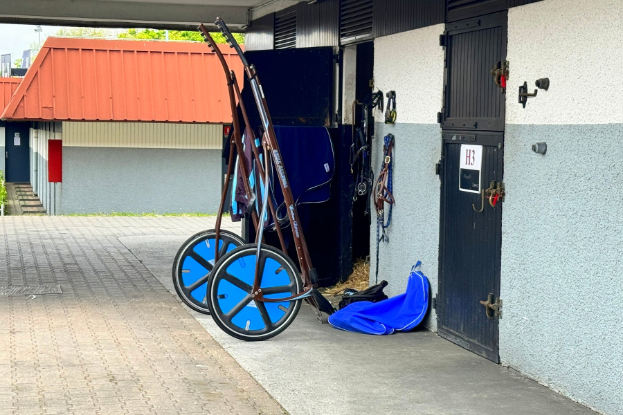 So war sie überhaupt nicht müde, als sie zur Boxe zurückkam. Sie pustete nicht einfach nur wenig, sondern schlicht überhaupt nicht. Stürzte sich vor dem Duschen schon auf das Heu in der Boxe und war alles andere als zufrieden.