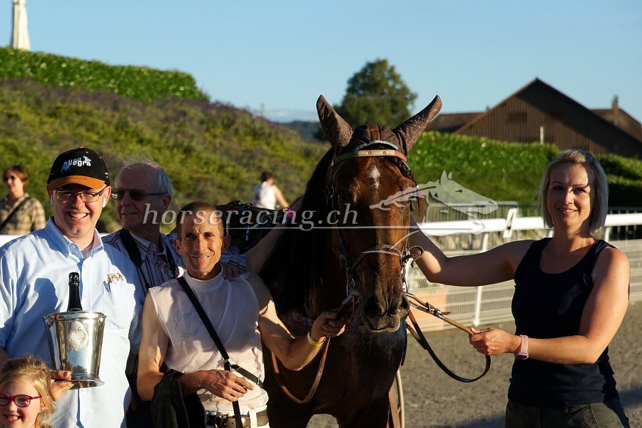 Schöner Prestige-Sieg im Prix des Elites (eines der Rennen, das wir noch nie gewonnen hatten), dem mit 15'000 Franken dotierten Hauptereignis des Tages. Toll, dass es geklappt hat. Loris ist von Vessillo seit Monaten mehr als nur überzeugt, doch in München hatte es nicht nach Wunsch geklappt. Deshalb waren wir etwas vorsichtiger und deshalb tut dieser Erfolg nun doppelt gut. Marcel hat ihn hervorragend gefahren, echt top. Und er war des Lobes voll für Vessillo. Ein Klassepferd, für welches man keine Peitsche brauche...