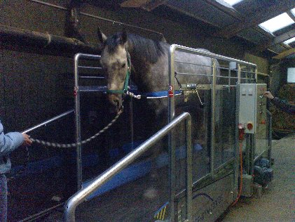 "Das Fitness-Studio fürs Pferd" - das steht auf dem Laufband, welches am Mittwoch nach Ostern geliefert wurde. Nun, das tägliche Training auf der Bahn steht natürlich noch immer im Vordergrund. Doch wir versprechen uns vom Laufband, welches als Ergänzung gedacht ist, einiges.