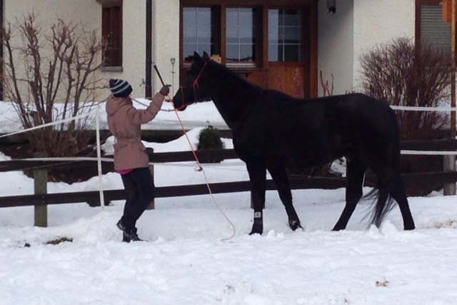 Pia zeigte auf dem tiefen Schnee einen Ausschnitt des Könnens, welches JYRI sich am neuen Ort angeeignet hat. Er ist sehr gelehrig und macht seine Sache sehr gut.